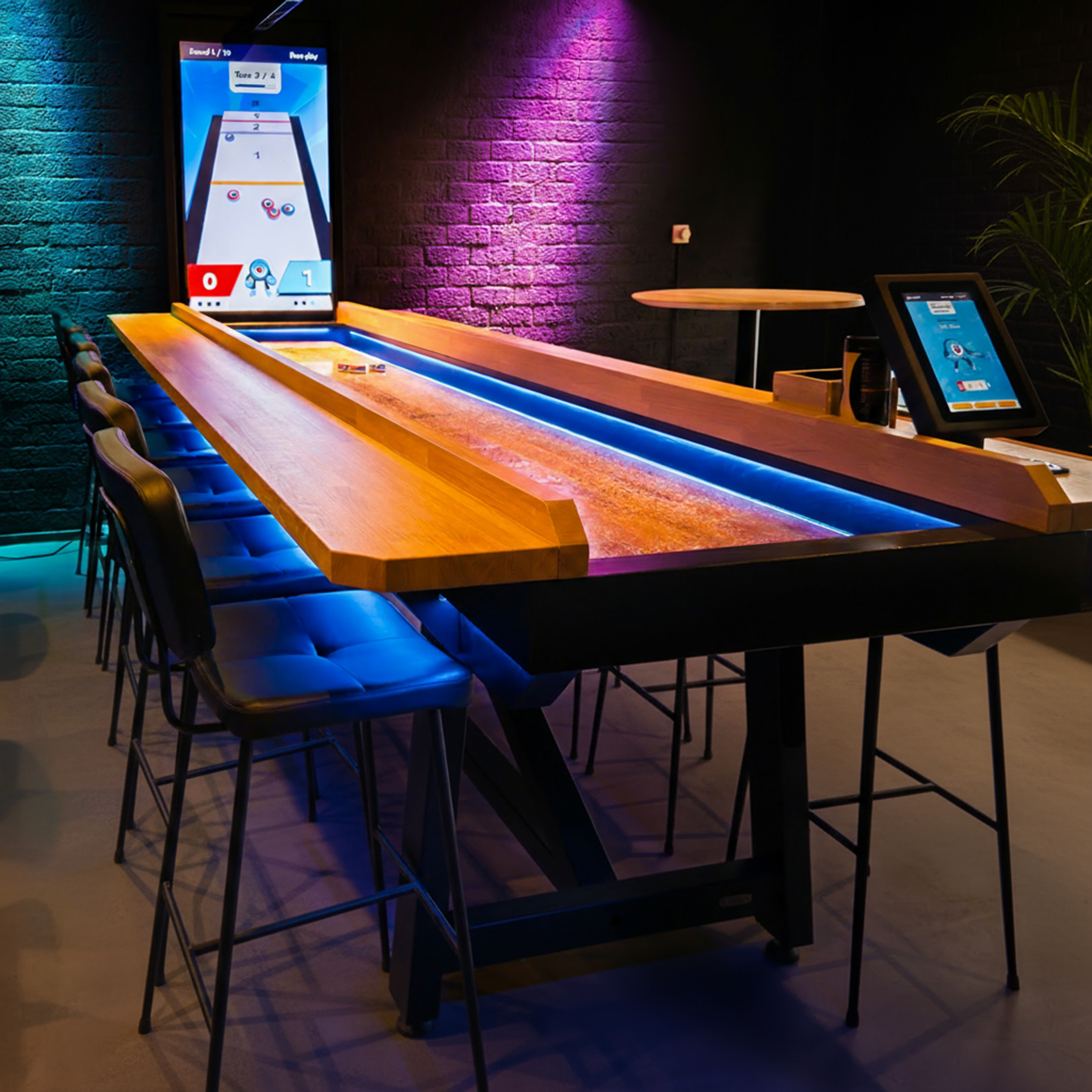Kies zelf de kleur met ons moderne LED-shuffleboard. Creëer een unieke beleving en pas de verlichting eenvoudig aan op jouw locatie.