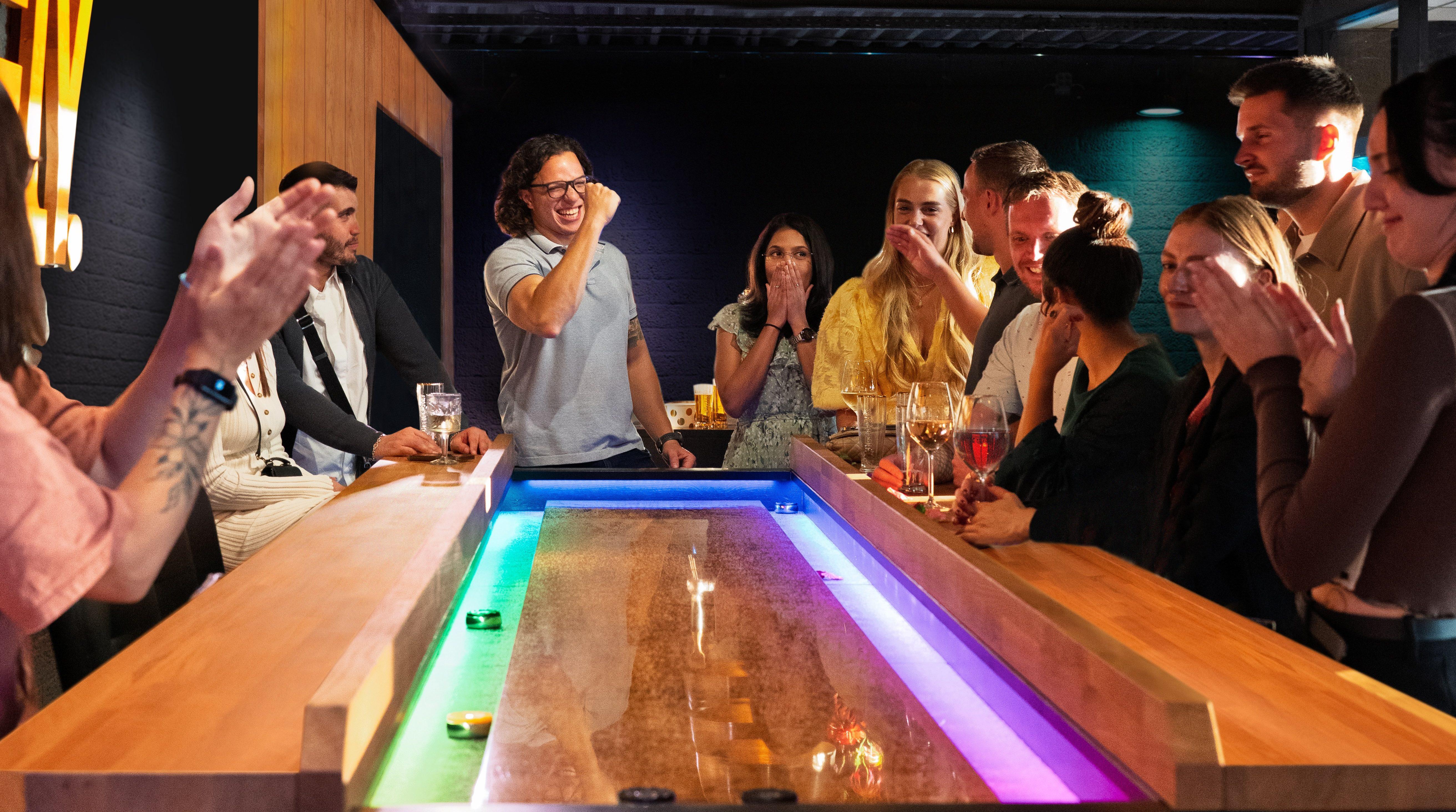 Speel, drink en geniet aan de Shuffleboard Bar met groepen tot 20 personen. Slim design voor maximale omzet per m²!