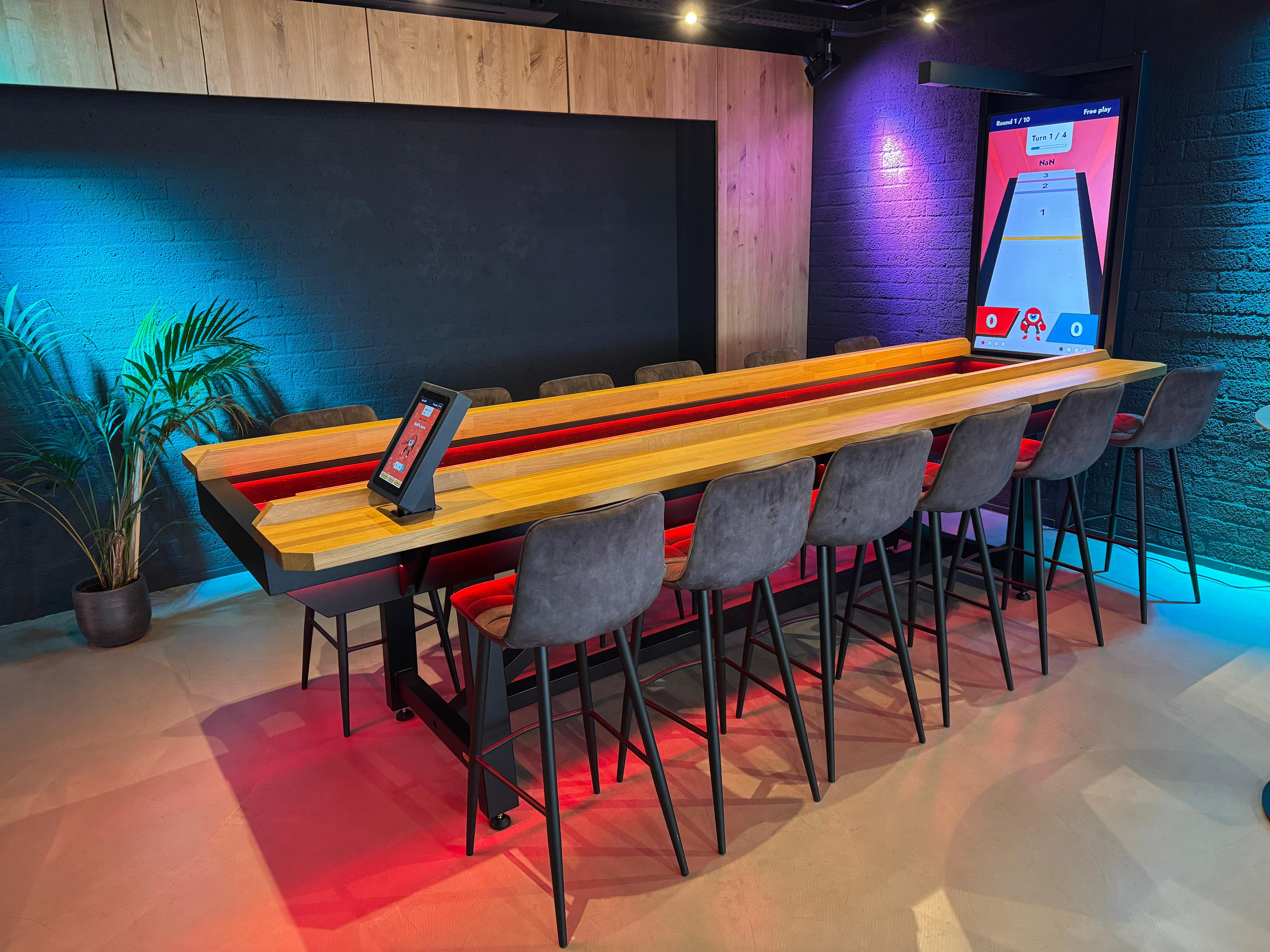 Kies zelf de kleur met ons moderne LED-shuffleboard. Creëer een unieke beleving en pas de verlichting eenvoudig aan op jouw locatie.