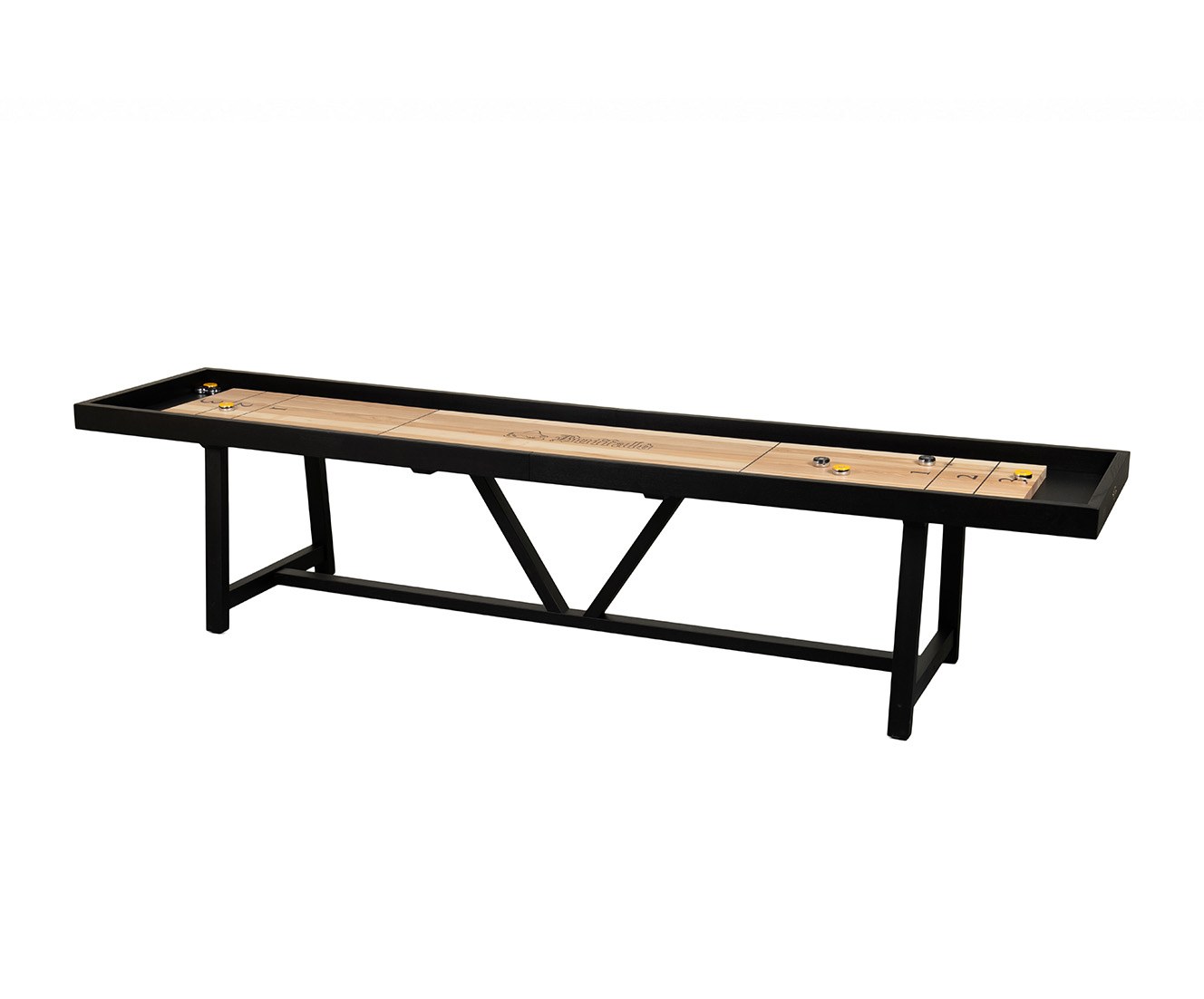 Recreational shuffleboard made of high-quality black ash. A perfect mix of fun and affordability with a sleek, lacquered playfield!
