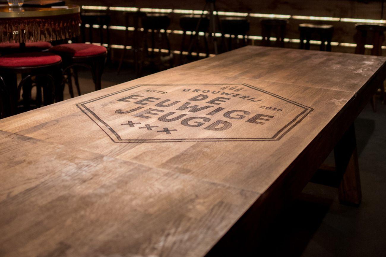 Uniek gegraveerd Old Oak Shuffleboard voor Tapperij De Eeuwige Jeugd.