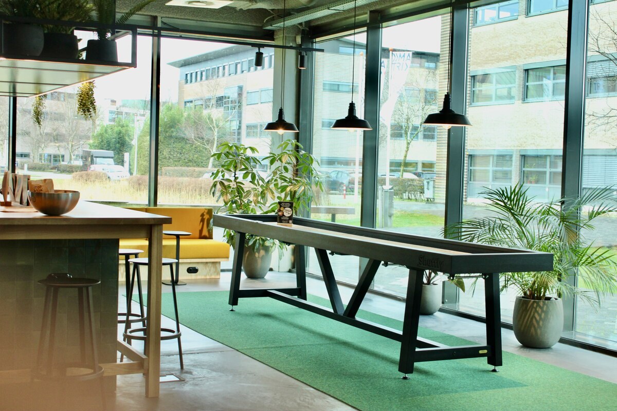 MATRIX SIX is niet alleen een toonaangevend en duurzaam laboratoriumgebouw op Amsterdam Science Park, maar het biedt ook een unieke en verfrissende toevoeging aan zijn lobby: shuffleboard! Temidden van baanbrekend onderzoek en innovatie biedt MATRIX SIX een ontspannen en vermakelijke omgeving waar bezoekers en wetenschappers kunnen genieten van een potje shuffleboard in de lobby. Of je nu een pauze nodig hebt tussen experimenten door of gewoon op zoek bent naar een leuk tijdverdrijf na een lange dag werken, de shuffleboardtafel in MATRIX SIX bieden een welkome afwisseling.