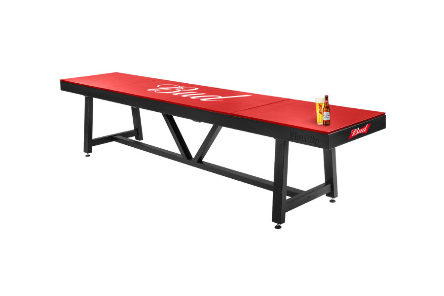 De gedurfde branding van Bud Beer tot leven gebracht met een op maat gemaakt shuffleboardontwerp.