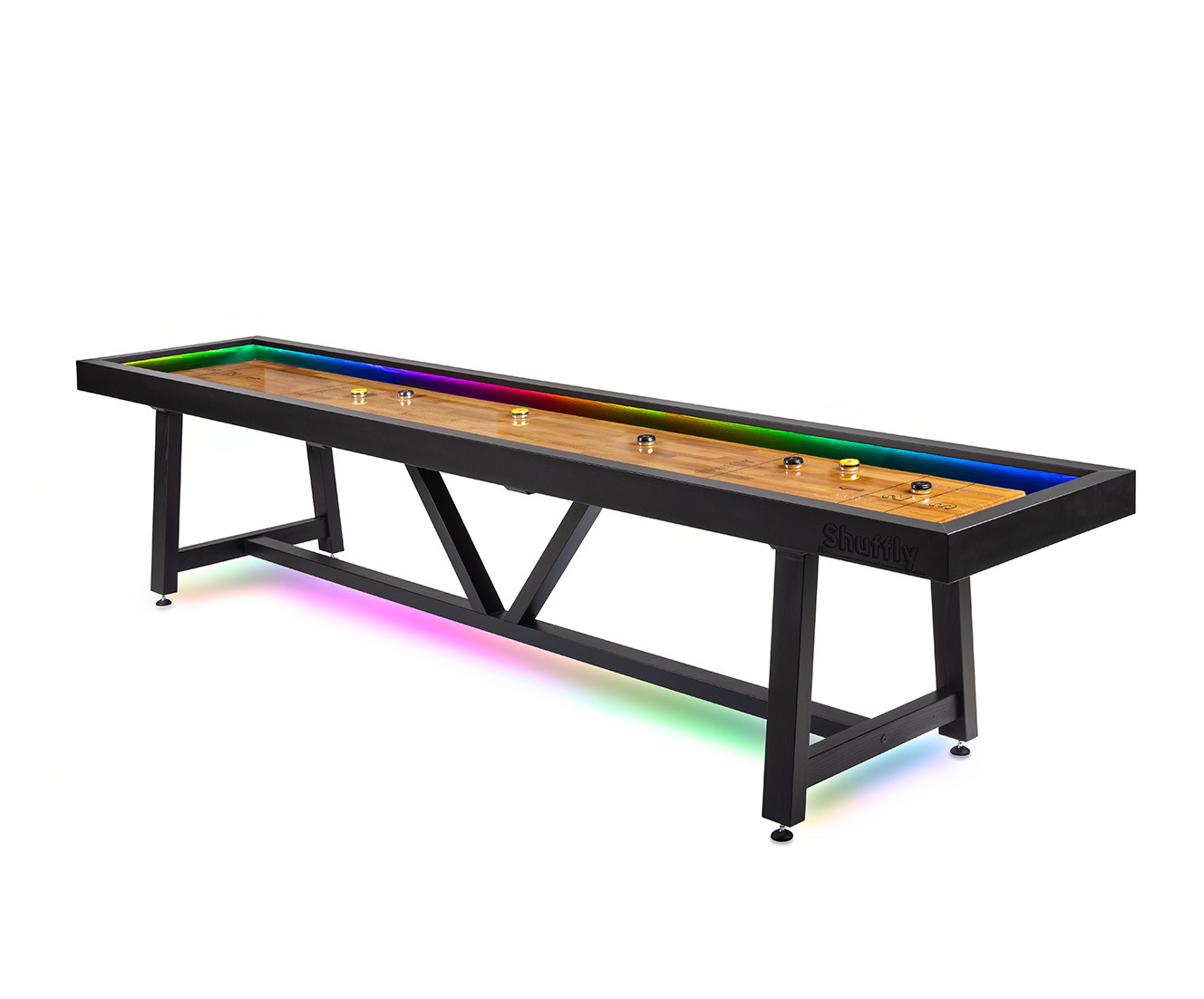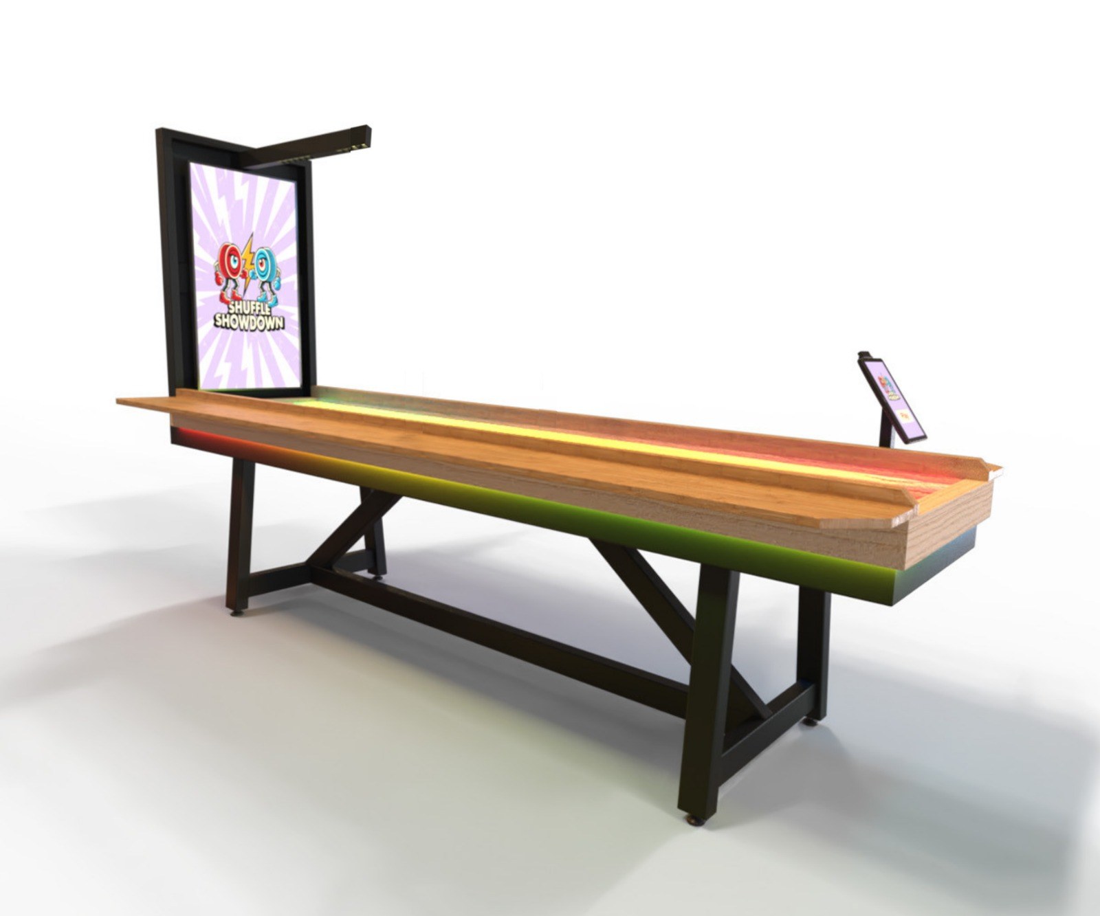 Stel je eigen shuffleboard samen! Kies voor LED-verlichting, barren, de interactieve Shuffle Showdown, eigen branding en meer.